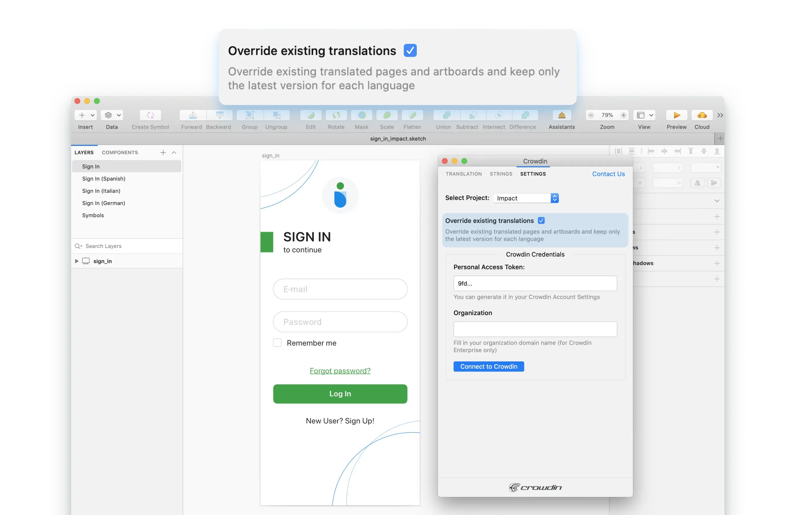 Learn more about Crowdin plugin for Sketch.